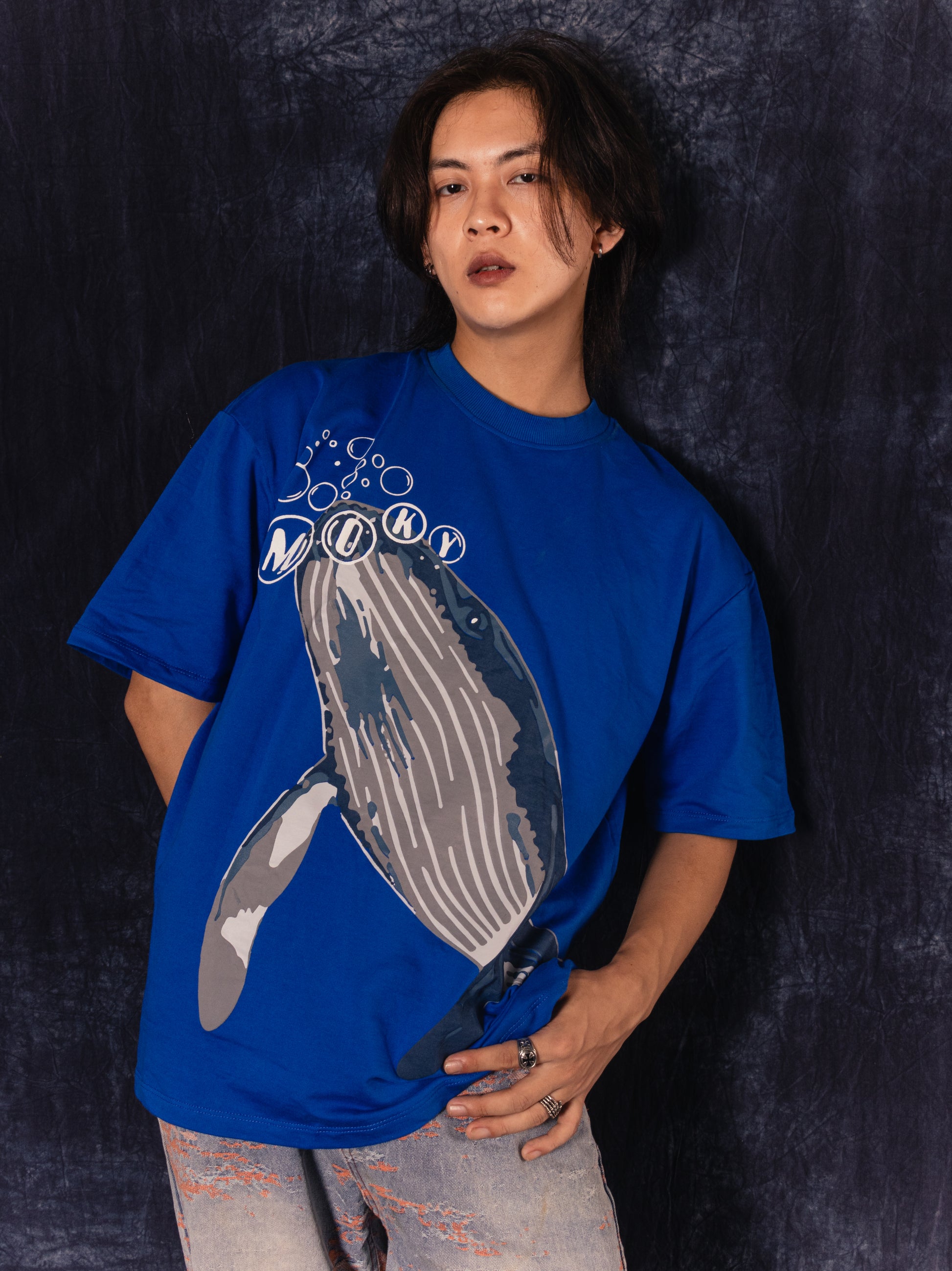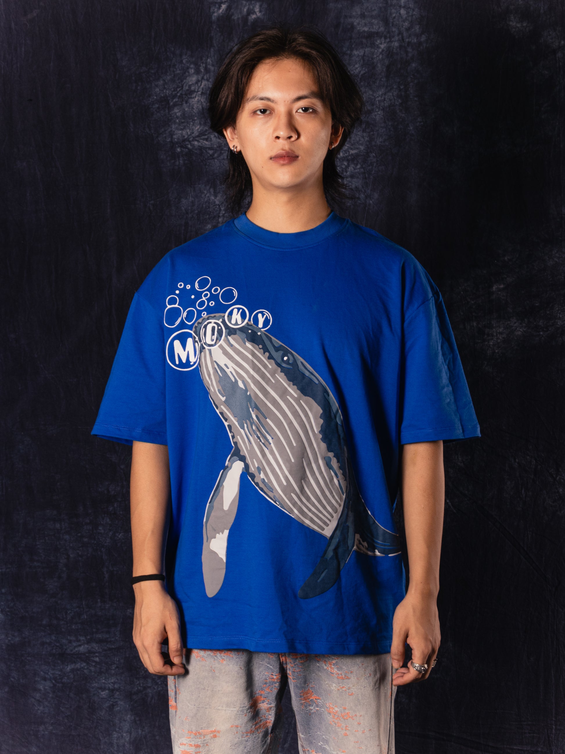 Inspired by the calm yet colossal spirit of the ocean, this oversized tee features a custom-rendered blue whale illustration that dominates the front with motion and presence. Crafted from premium 240 GSM cotton, it delivers heavyweight comfort without compromising breathability, making it ideal for everyday streetwear layering.