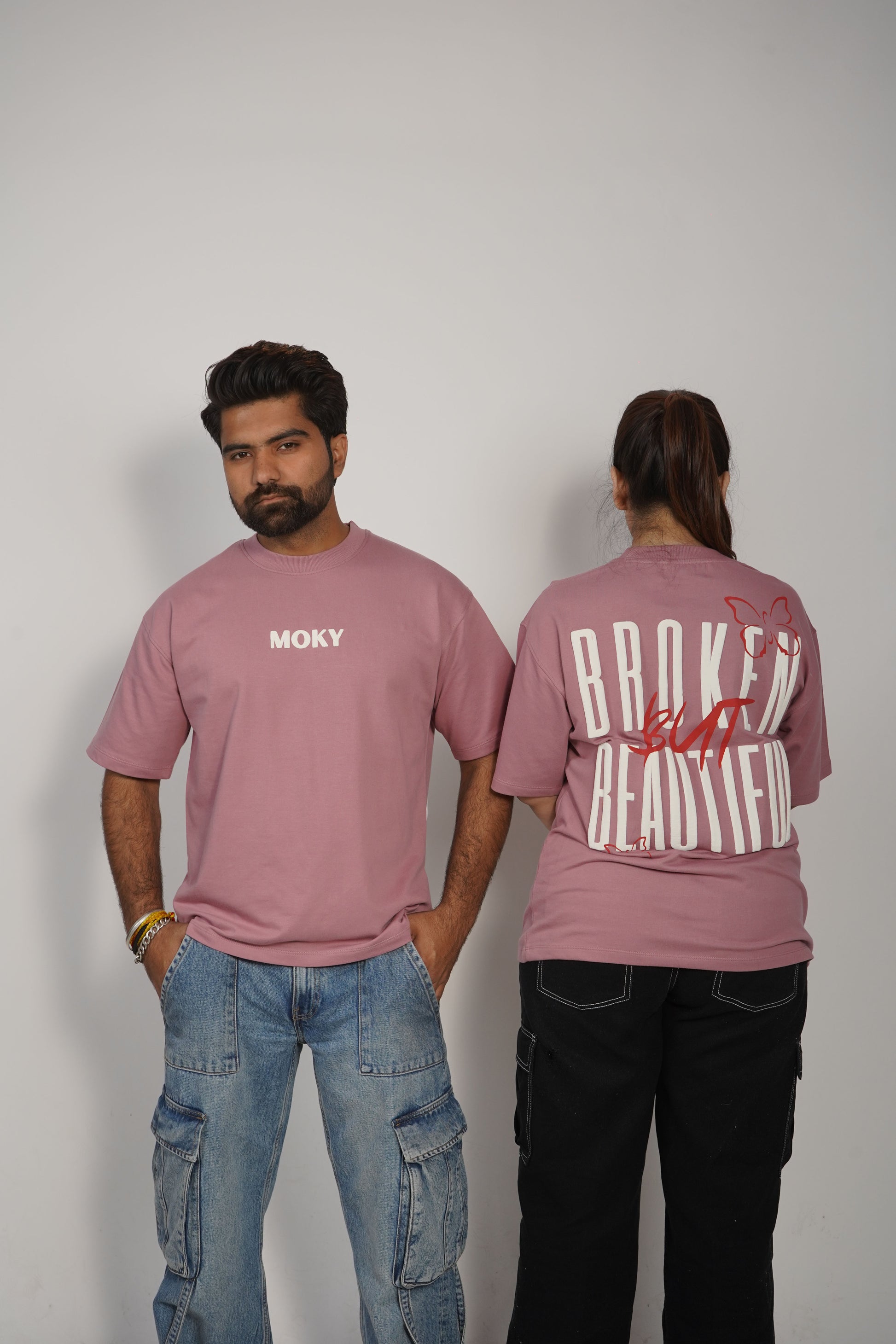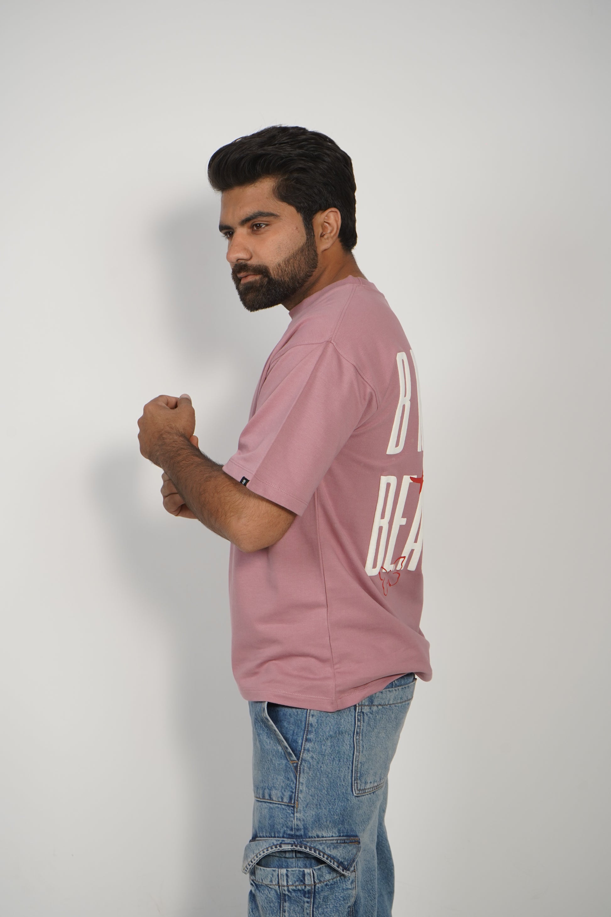 LOOSE-FITTING T-SHIRT IN ROSE RED COLOR WITH A ROUND NECK AND SHORT SLEEVES. CONTRAST FRONT AND SPECIAL TEXT ON BACK PUFF-PRINT.